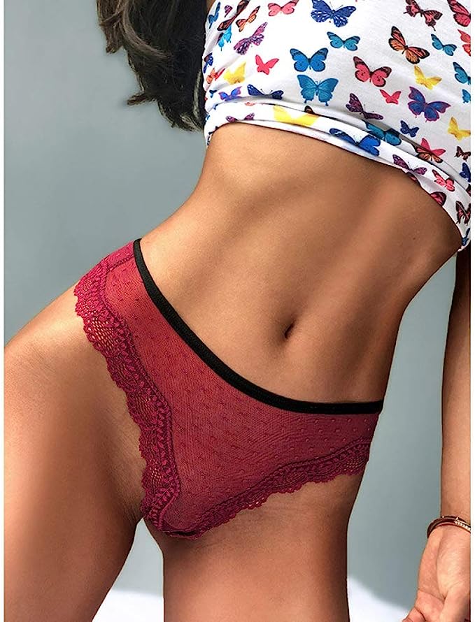 YUHOOE Damen Sexy Spitze Tanga Bikini Höschen Transparent Herz Niedrige Taille Hohl Nahtlose G-String Unterwäsche Dessous,7Er Pack