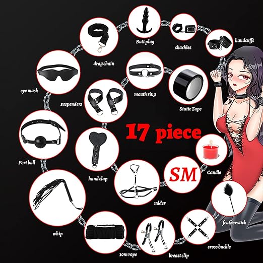 Bondageset extrem sex BDSM Fesseln sex set Handschellen sex Augenbinde Peitsche Nippelklemmen Knebel 17 Stück Erotik SM Sexspielzeug für paare, Anfänger und Erfahr Paare(Schwarz)